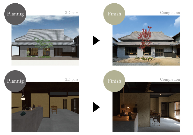 意匠堂では、完成イメージを持ってもらいやすくなるよう、完成予想パースを無料で作成しています。